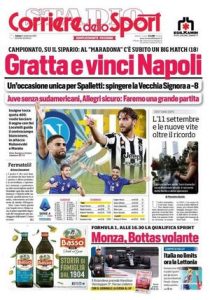 Torna la Serie A. I quotidiani sportivi gli dedicano il principale spazio. Allora ecco Napoli, Juventus, Inter, Milan, Atalanta e tanto altro.