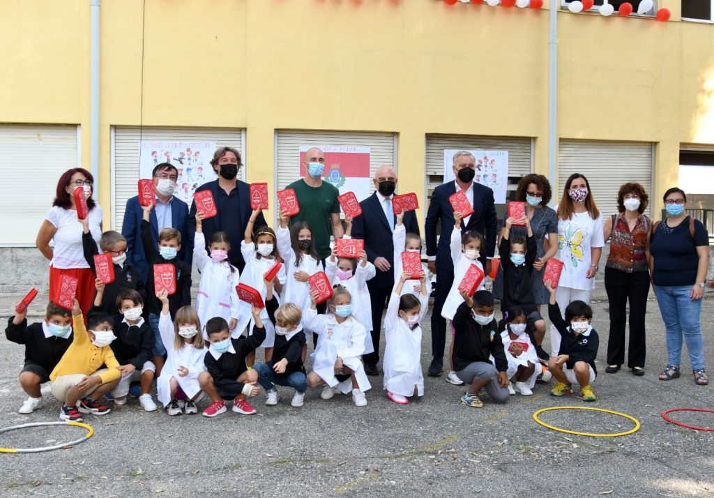 Gli allievi della “Puecher” e della “Buonarroti” hanno ricevuto l’astuccio biancorosso Un motivo in più per ricordare il primo giorno...