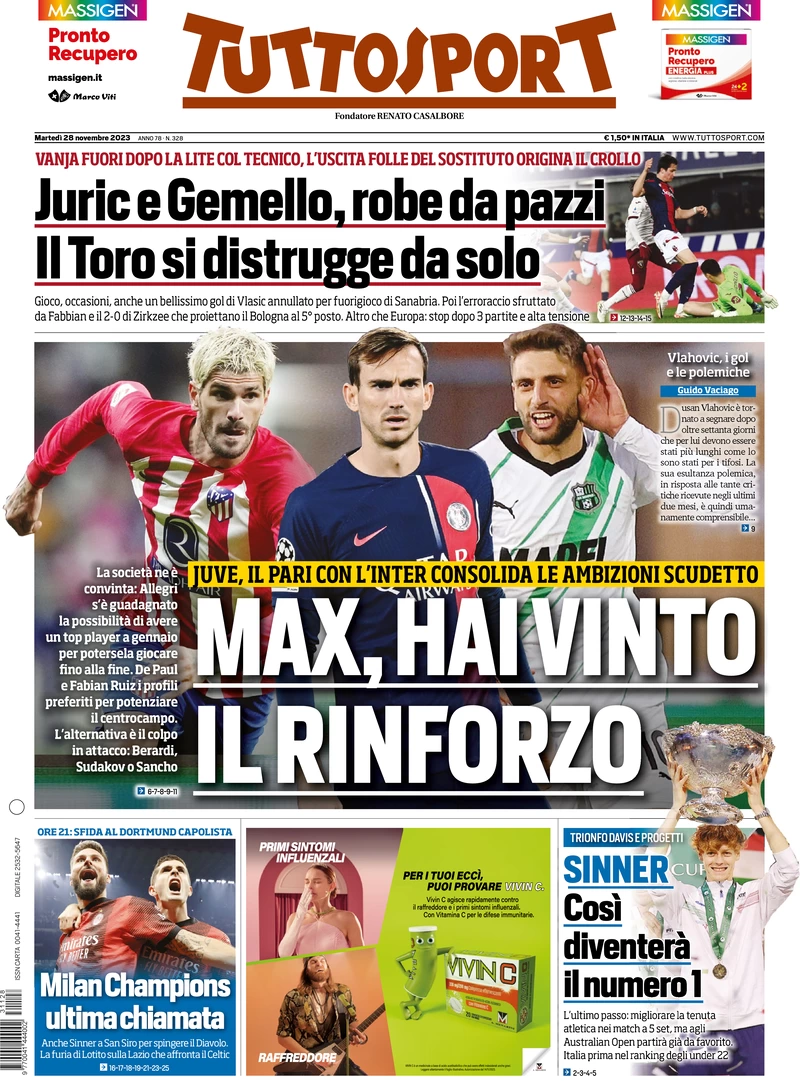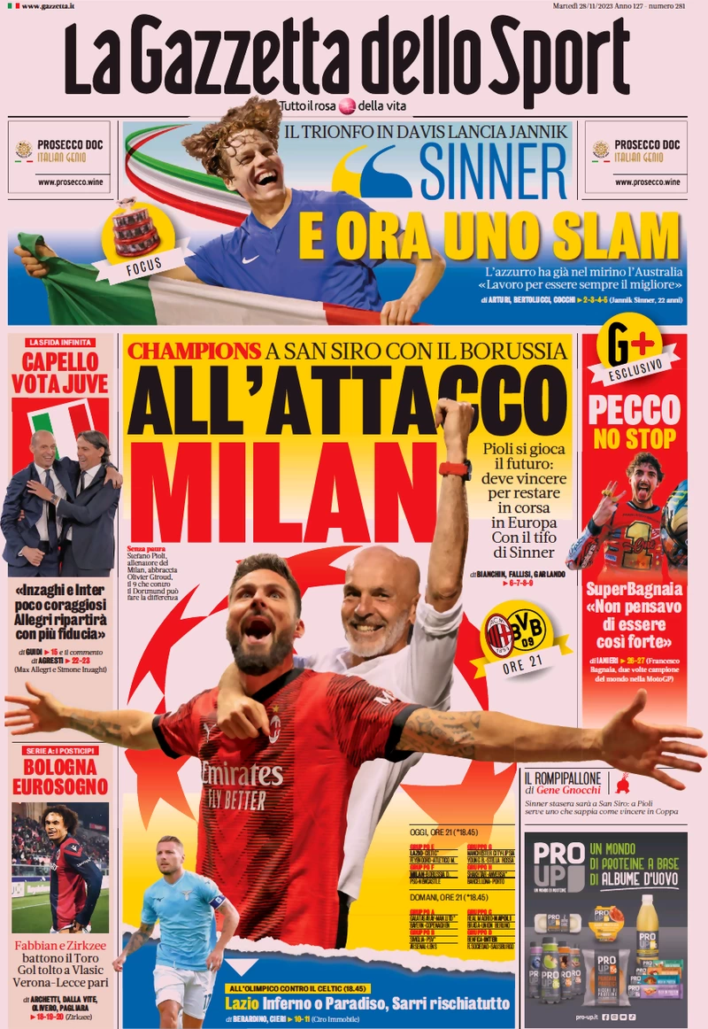 Vi proponiamo le prime pagine dei quotidiani sportivi di oggi in edicola, martedi 28 novembre 2023