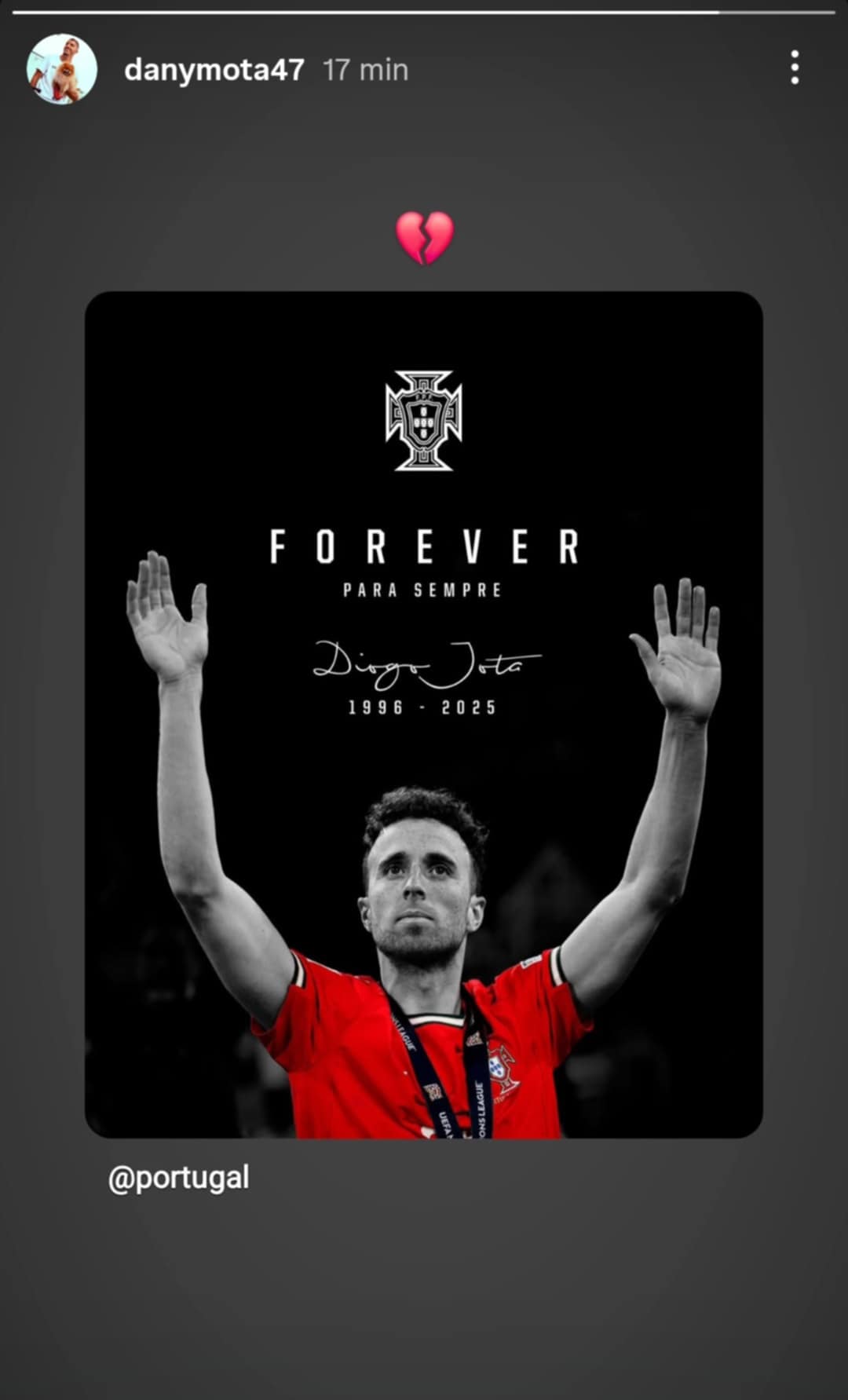La morte di Diogo jota ha sconvolto il mondo del calcio e ancora di più i portighesi. Anche il calciatore del Monza Dany Mota ha voluto ricordare il suo connazionale attraverso una stories su Instagram.