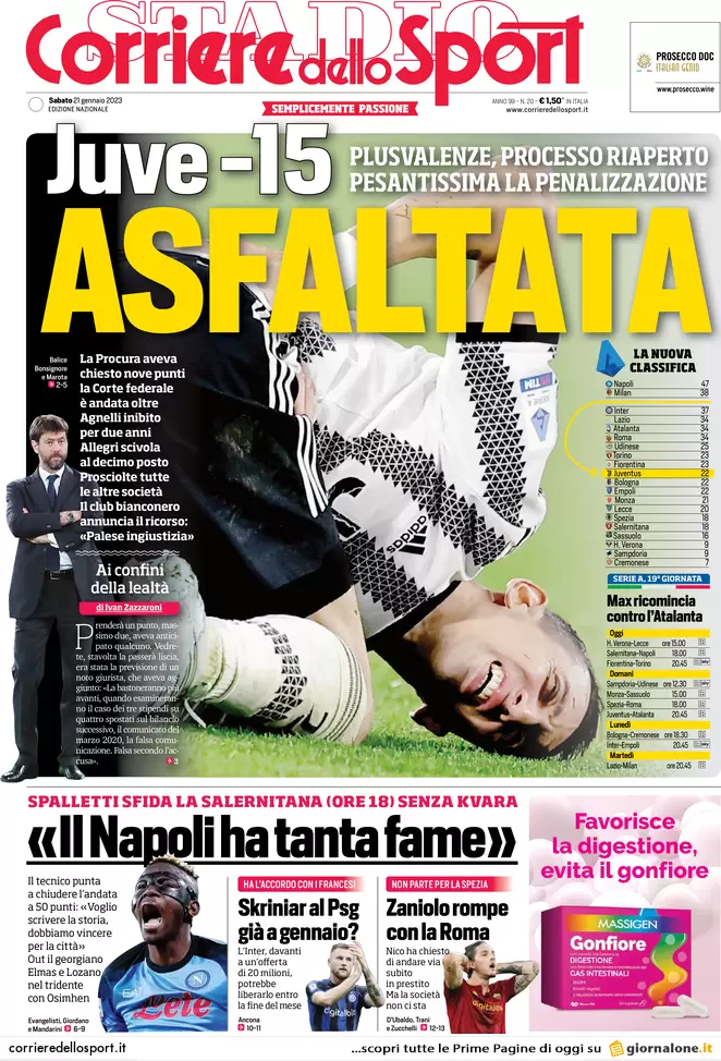 Ecco le prime pagine dei principali quotidiani sportivi nazionali: La Gazzetta dello Sport, il Corriere dello Sport e Tuttosport